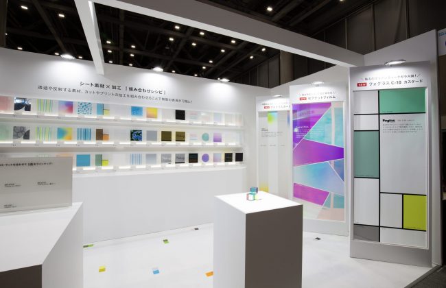 今回の展示では、「COLOR, LIGHT, LAYER」と称し、光源やレイヤー構造を利用した立体感や動きのある表現の「組み合わせレシピ」をご紹介します。B5サイズのアクリル板やライティングボックスを設置し、店舗ディスプレイやサイン、インテリアデザインなどのヒントとしてご活用できるシート表現をご覧いただけます。ブース来場者には〈レシピブックvol.3〉をプレゼント!皆様のご来場をお待ちしております。
