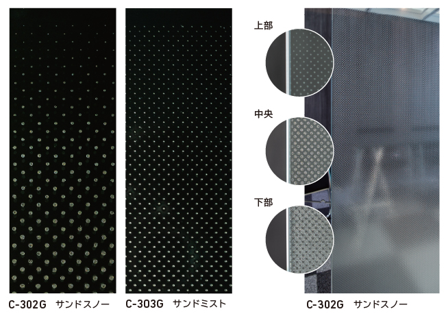 フォグラスのエンボスがそのままドットグラデーションになったエンボスグラデーション。現在、販売中のC-302G サンドスノー(シングルグラデーション)に加えて、センターグラデーションタイプの「C-303G サンドミスト」が新発売。