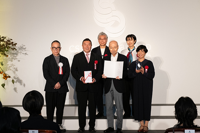 特に、金沢工業大学の五十嵐威暢アーカイブのカッティングシートの演出では、30年来、五十嵐先生の助手を勤められた羽田麻子様ご夫妻を核としたチームと共にCSデザイン賞準グランプリを受賞されました。弊社会長とは、トロフィーデザイン依頼からの旧知の間柄で、贈賞式では抱き合って再会を喜ばれていました。それが、わずか3ヶ月前のことです。このようにお会いできる時間があったことが奇跡のようにありがたく、感謝でいっぱいです。