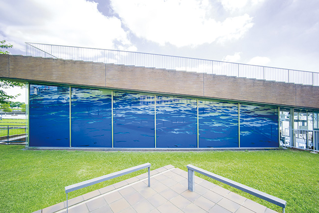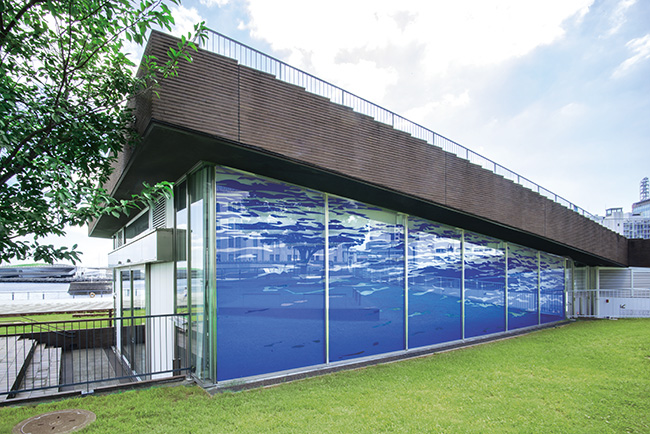 本賞は、実際に施工された作品が審査対象となる一般部門と、テーマに沿ったデザインを提出する学生部門の二部門で構成され、2年に一度開催しています。今回の学生部門は横浜市にあるアートスペースとカフェを併設した施設、象の鼻テラスのガラス面のデザインを提案して頂きました。
