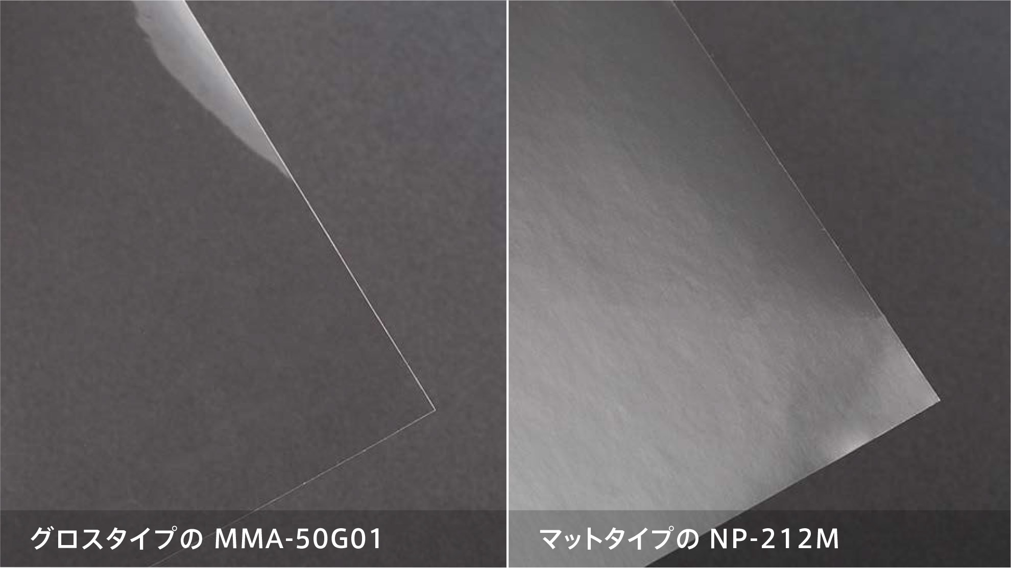 印刷したシートの表面に透明のフィルムをラミネートすることで、色落ちや摩擦による傷つきを防止し、印刷物の美しさを長期間保つことができます。表面に光沢を出して発色が鮮やかになるグロスタイプと、反射を抑えて落ち着いた印象になるマットタイプがあります。また、外貼りが可能なものやハードコート付きのものなど、用途に応じて最適なラミネートをお選びいただけます。