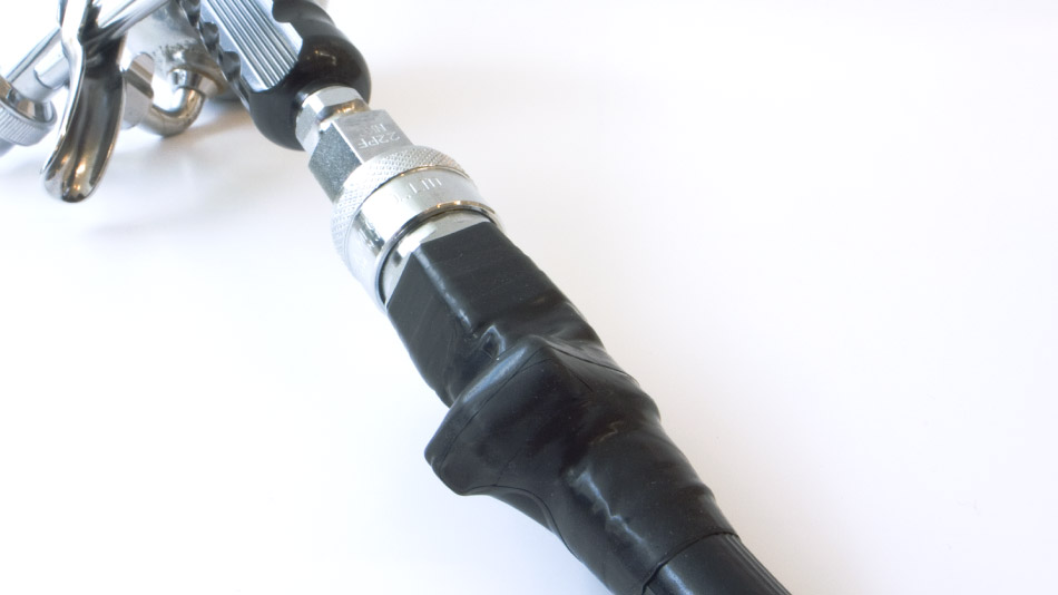 BG-BANDAGE(ビージーバンデージ)は、シリコンゴム製の自己融着テープです。粘着剤を使用せず、テープ同士が接触することで融着し、一体化します。ホースやハンドル、持ち手などに巻き付けることで、水漏れ防止や滑り止めなど、様々な用途にご使用いただけます。