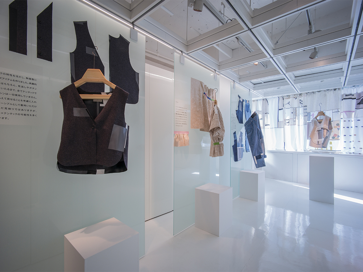 ファッションブランドspoken words projectは(株)中川ケミカルのテンタックをファブリックに使用する事で、あらゆるアパレルアイテムにおける多々なる可能性を確信し、その実験検証及びサンプル制作を行います。コレクションブランドである弊社が高級服の名に恥じぬ製品クオリティと色・素材の美しさを求めると同時に、手軽さを特性に一般ユーザーのいわゆる「手芸」の目線でもその可能性を見いだしております。サンプル制作は服を主役に鞄等の小物、カーテンやクッション等インテリア製品なども制作しており、特筆すべきはミシン等を使わない「無縫製」でほぼ全てが制作されているということ。ミシンが発明されて多くのアパレル産業をそれが担ってきましたが、貼って作れる布製品は小さな革命さえも期待されます。