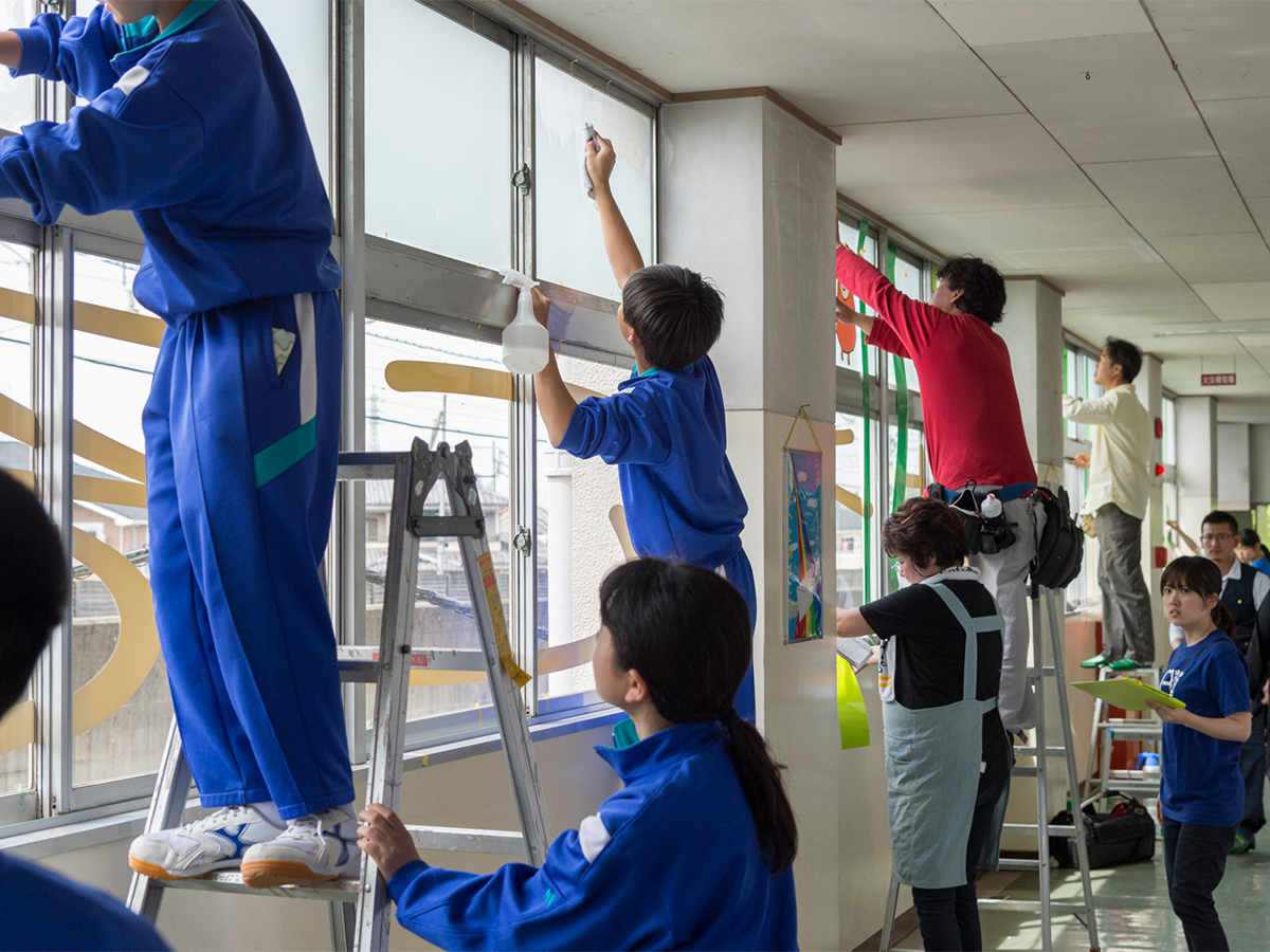 竹の塚中学校西側校舎窓の活用と地域の活性化に関する取組