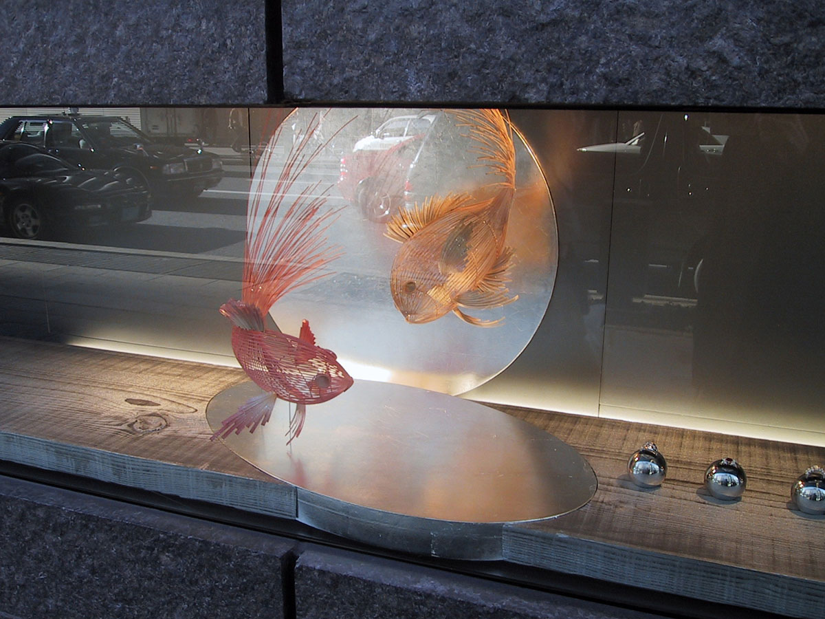 ディレクション:渡邊 雅稔[株式会社ミキモト 営業企画部 店舗・ディスプレイ課] デザイン:渡邊 雅稔・河合知恵 プロダクション:奥山工房 現代工房 ※使用したマテリオ フレークシートは現在、廃番となります。