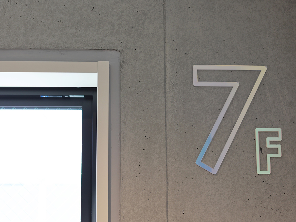 セプテットフィルムやフォグラスを組み合わせたオフィスサインのデザインとなっております。