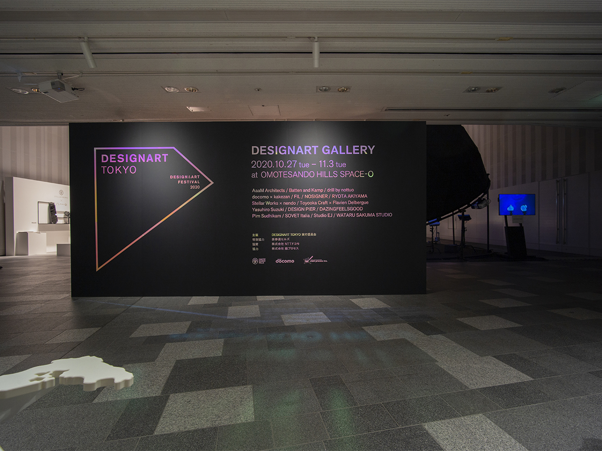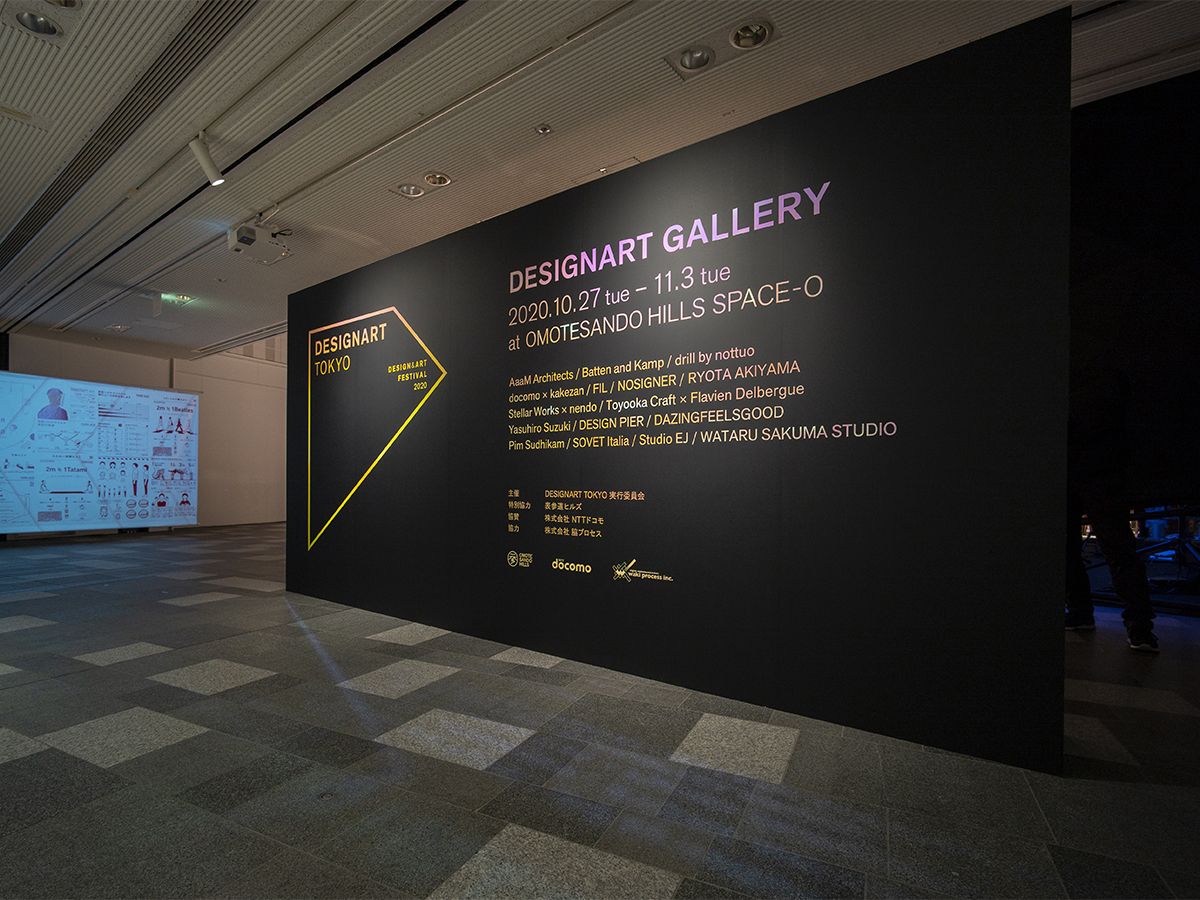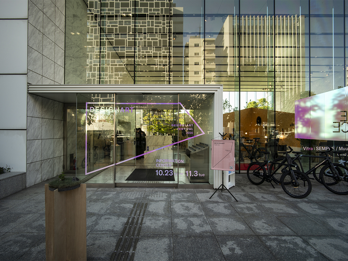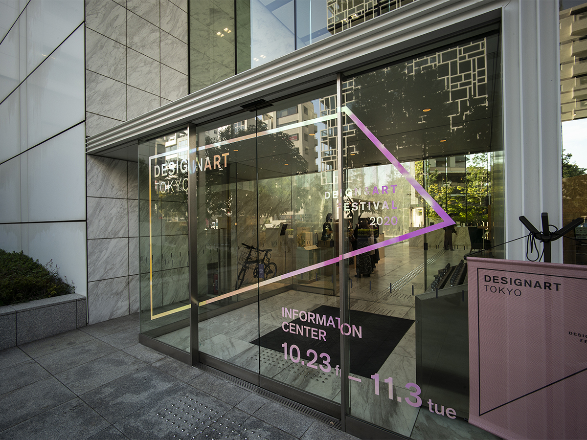 「DESIGNART TOKYO 2020」のガラス面や壁面サインにご使用いただきました。 カッティングシートの白(711)をベースにセプテットフィルムを組み合わせて使用されております。見る角度によって変わる色の変化や、黒色ベースの壁面サインもコントラストが綺麗です。