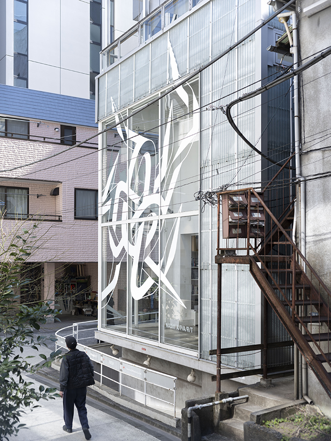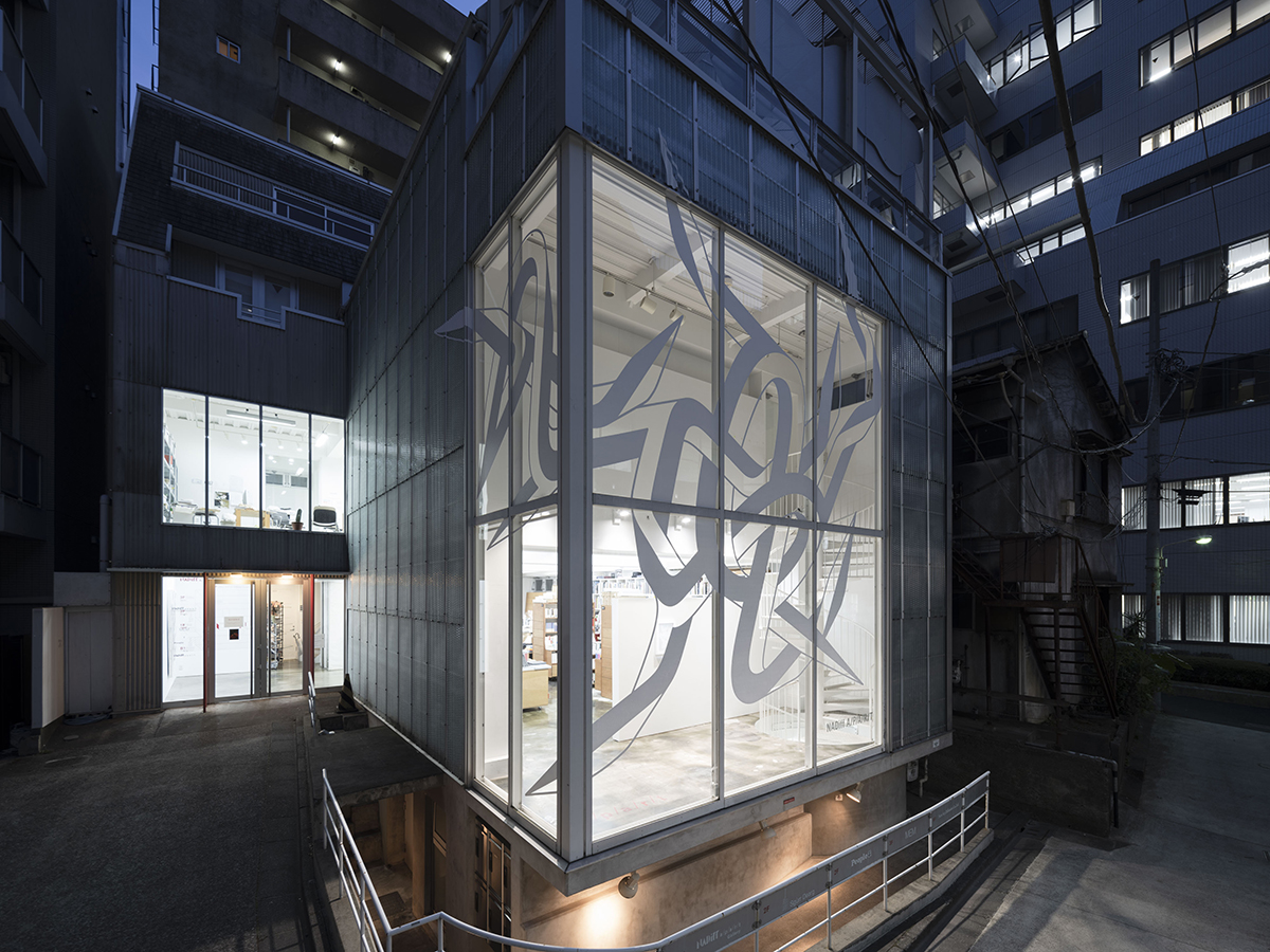 1階に書店、地下にギャラリーを併設するショップ「NADiff a/p/a/r/t」で開催した大山エンリコイサムの個展「Paint Blister」に際して、吹き抜け部分の窓ガラスにカッティングシートの作品を設置。