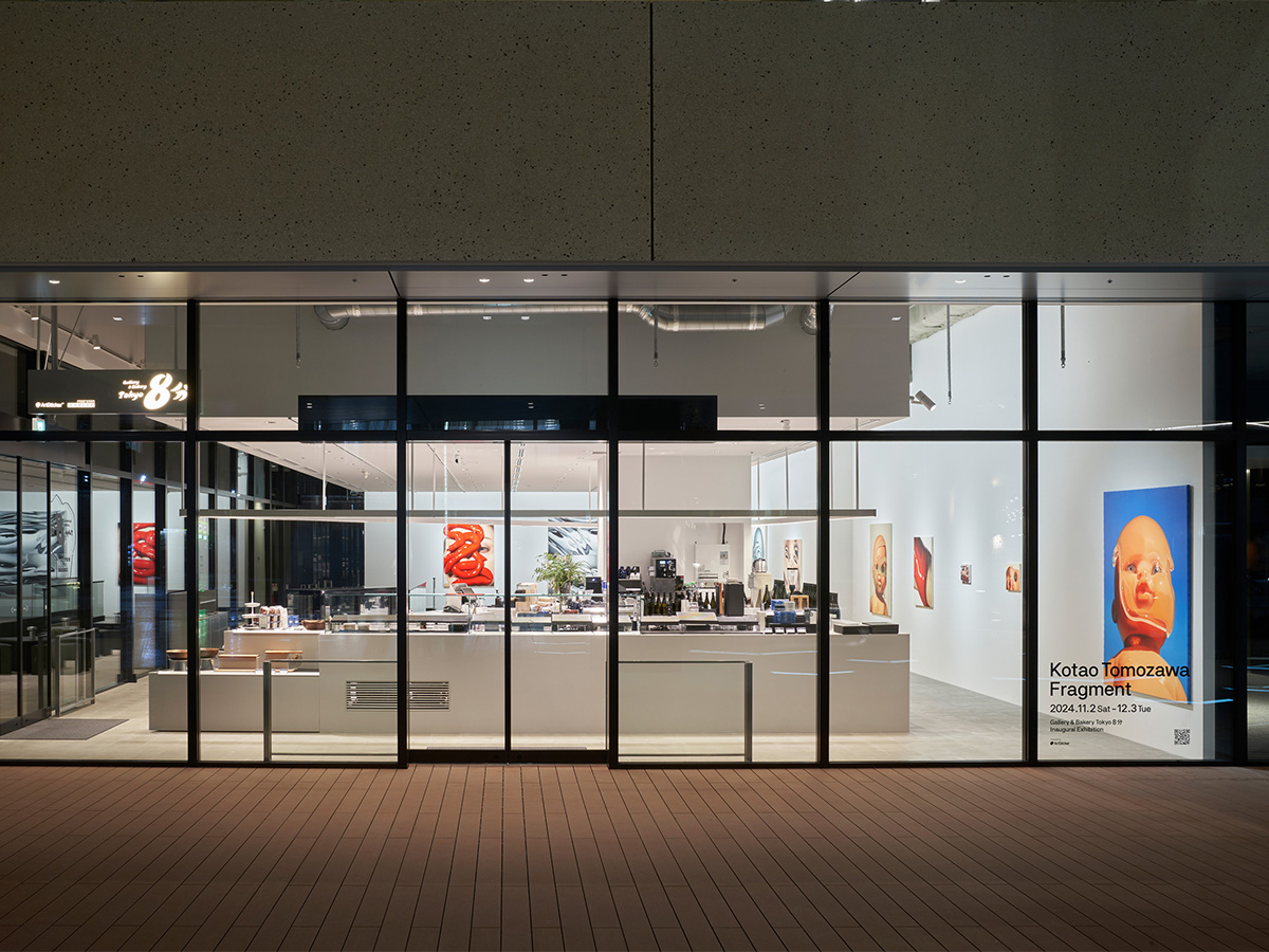 Art Direction:株式会社The Chain Museum photo:Ryo Yoshida アートギャラリーとベーカリー&カフェが併設する「Gallery & Bakery Tokyo 8分」のウィンドウサインに弊社のシートをご使用頂きました。貼り替えになる展示サインはカッティングシート、施設のサインは長期使用となるのでバイオマスタフカルをそれぞれ用途によって貼り分けております。